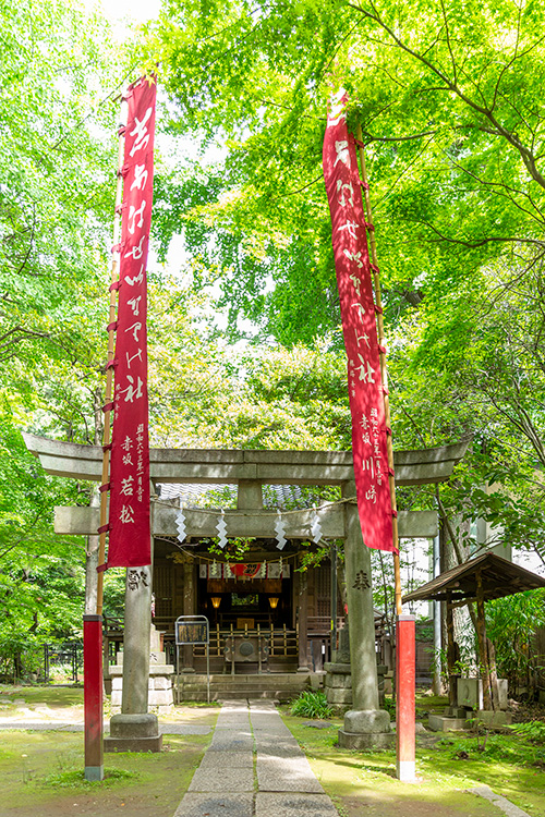 赤坂氷川神社の境内を赤坂駅方面に降りていくと、参道の脇に「四合稲荷」がお祀りされています。その名の通り、赤坂周辺に鎮座していた4つの神社が合わさってできた神社ですが、名付け親は勝海舟という大変由緒ある神社です。参拝すると幸せを授けてくれると言われ、パワースポットとしても有名です。御社殿参拝後、ぜひ忘れずにお参りしてみてください。