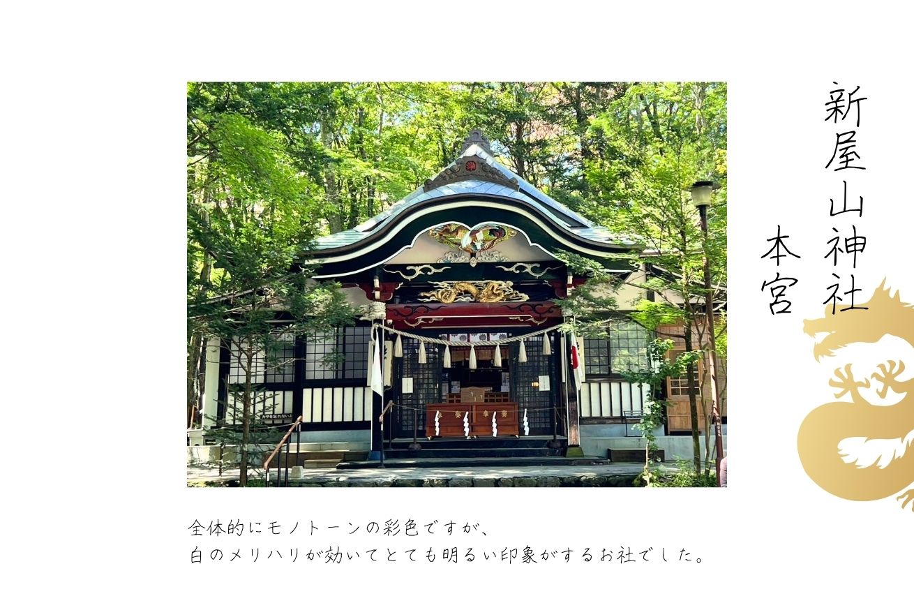 黒いお社に白く塗られた縁、鮮やかな彩色の鳳凰と龍が目をひきます。新屋山神社本宮は、そのご利益の名声から想像していたより、もっと親しみやすく、愛らしい印象を受ける境内でした。