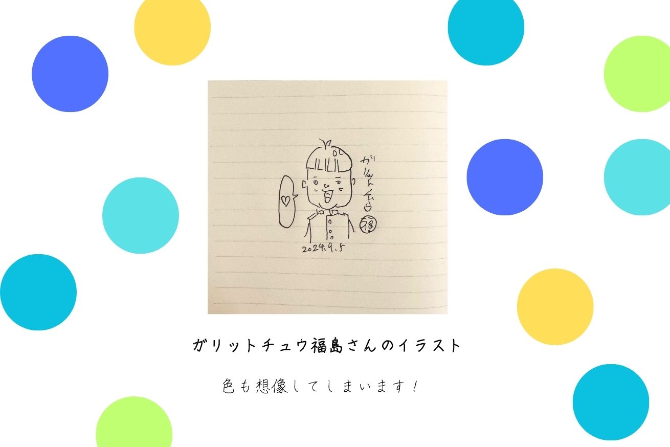 私たちにも大変感じよく接してくださり、快くサインをいただきました!というか、イラスト!ガリットチュウの福島さんは、アーティスト「毛塚治虫」さんとしても、個展を開かれるなど活躍されています。図々しく、写真もお願いしました。