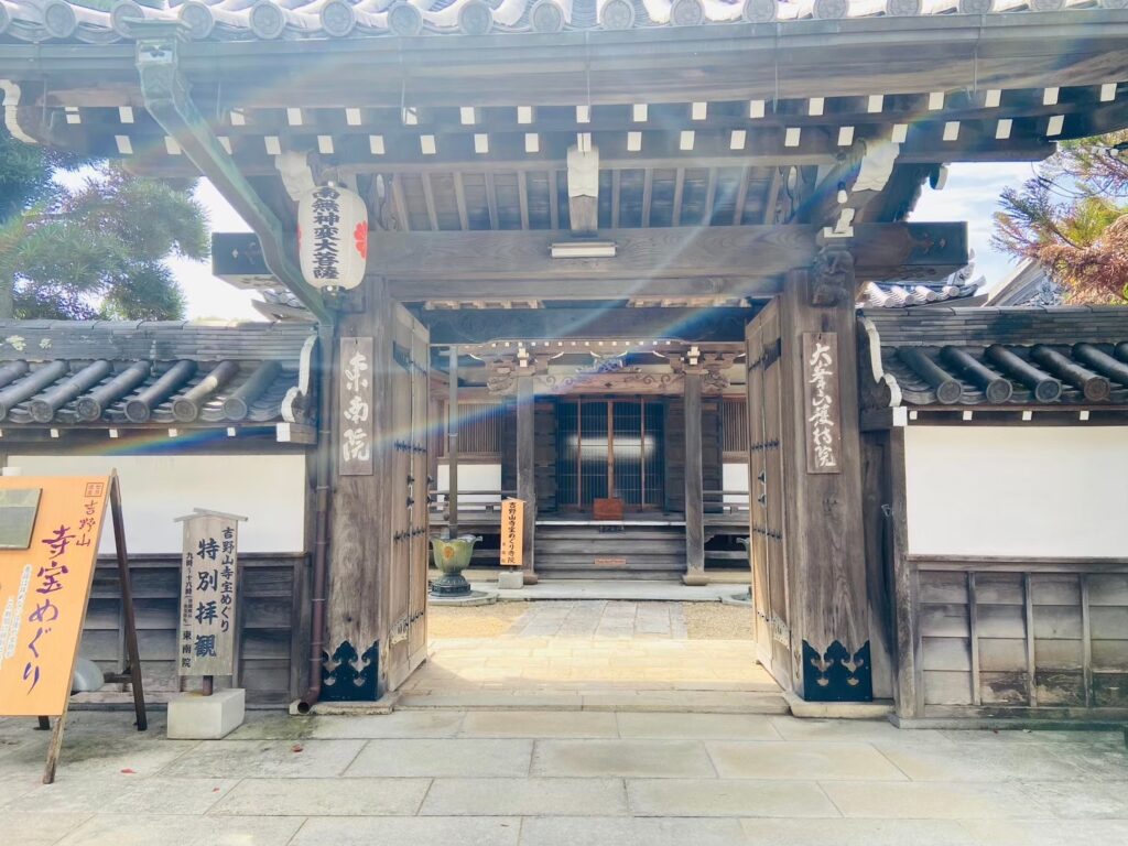 蔵王堂で念願のご本尊にもお会いしてテンションが上がりつつ、参道を大きなスーツケースをガラガラと引きいて趣ある東南院の門をくぐりました。