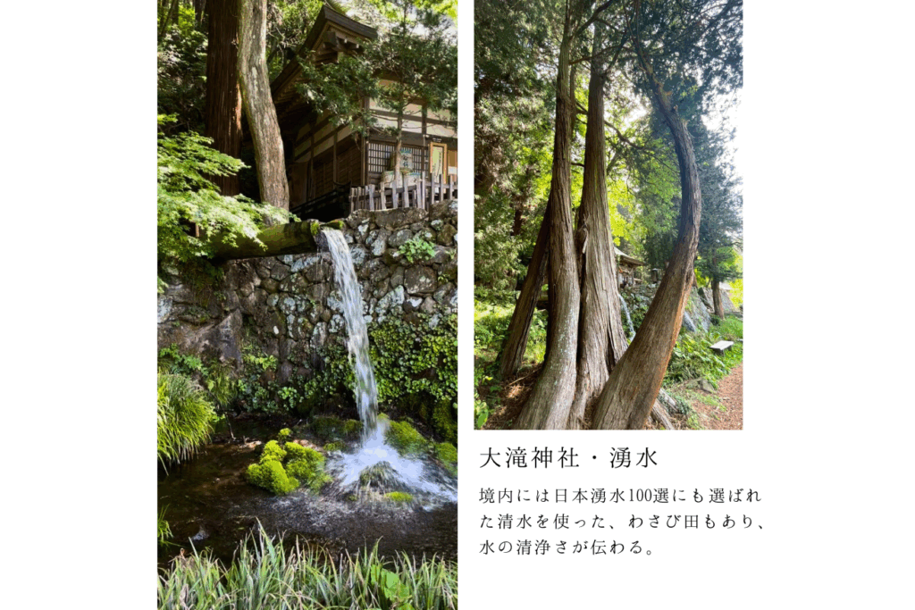 こちらにある大滝湧水は名水百選にも選ばれておりまして、綺麗な透き通ったお水です。