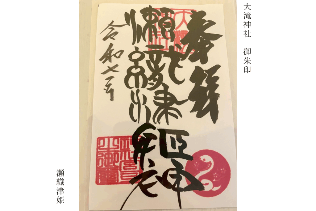 今回、大滝神社で授与して頂いた御朱印です。