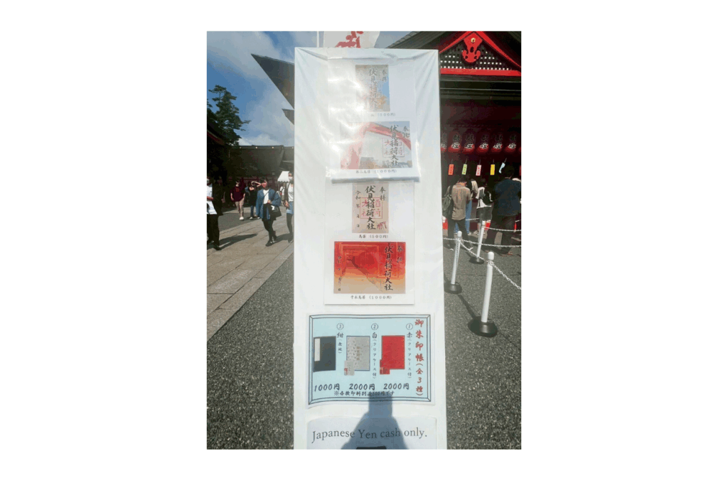 私が訪れた時は、御朱印は4種類。通常の書入れてくるタイプに加えて、伏見稲荷らしい絵柄がプリントされた書置きが3種類。