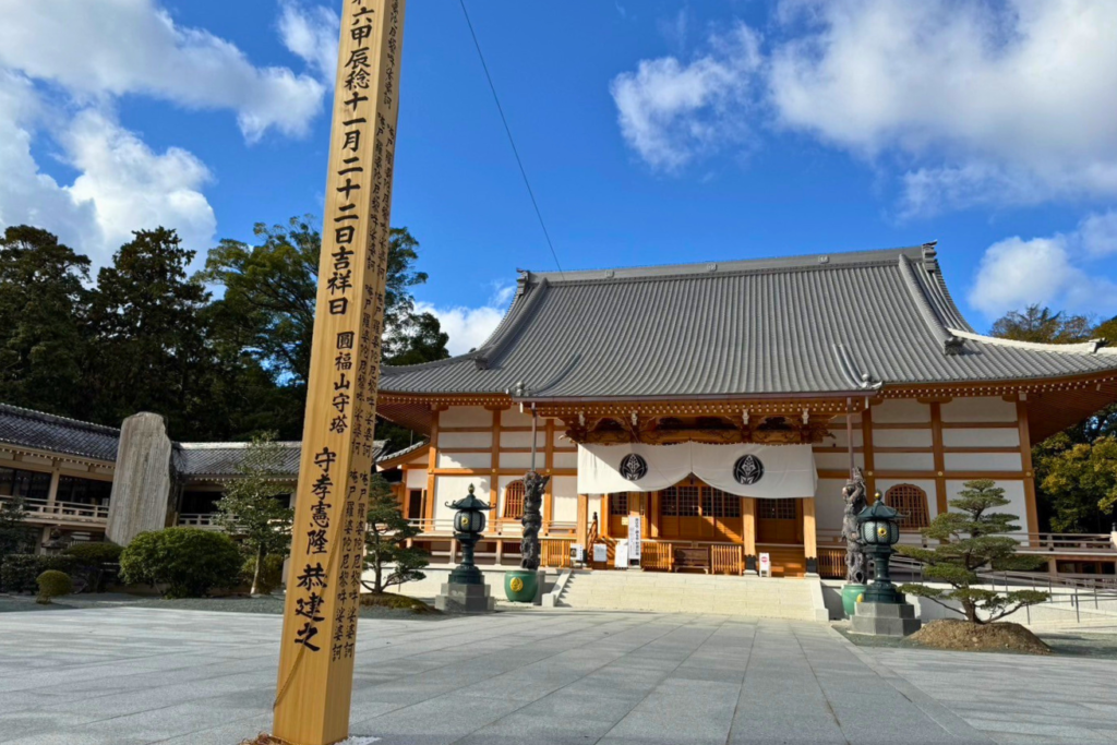 法堂は曹洞宗の本堂のこと。はっとうと呼びます。2024年に竣工、それに合わせ以前の千手観音様を胎内仏とした新たな千手観音様を建立しました。