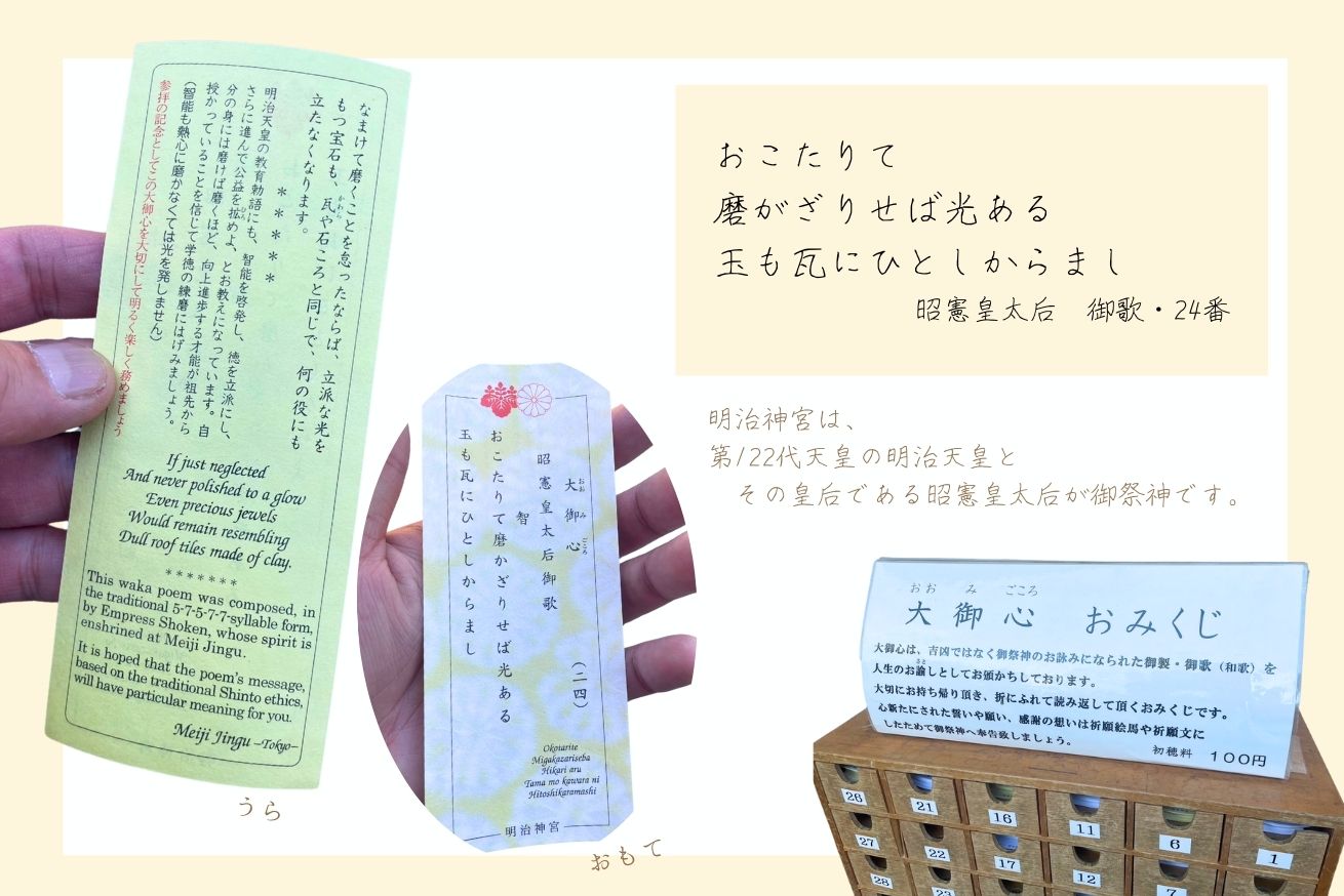 明治神宮のおみくじは大御心おみくじです。