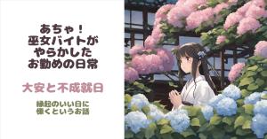 コラムその③あちゃ!巫女バイトがやらかした!お勤めの日常② 大安と不成就日 縁起のいい日に慄くというお話