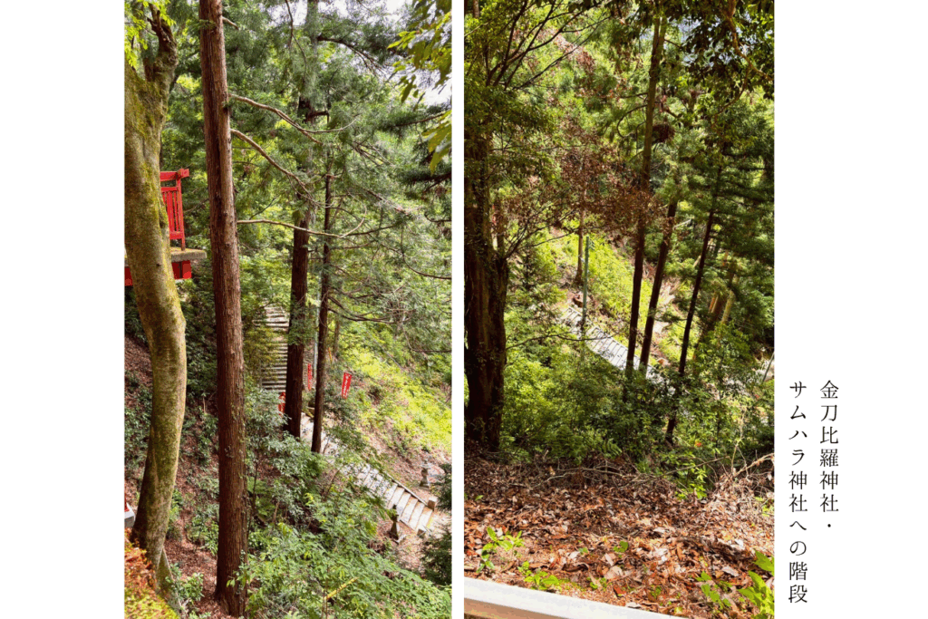 一度サムハラ神社を通り過ぎていくと、この場所がかなり高いところにあることがわかります。そして、ふと見た先には、何とずらりと続く階段が!