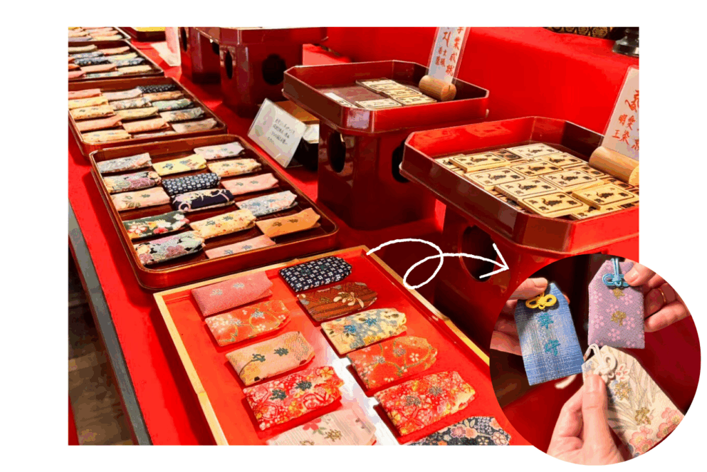 続いて、お守りを入れるための袋を選びます。これがまた、すっごくかわいい!そして、選んだ柄が3人とも全員違う上、誰も女子女子していないと爆笑!この柄は定期的に入れ替わっていて、最近の浄土寺さん情報によると猫柄が登場したそうですよ。猫の町でもある尾道の思い出にぴったりですね。