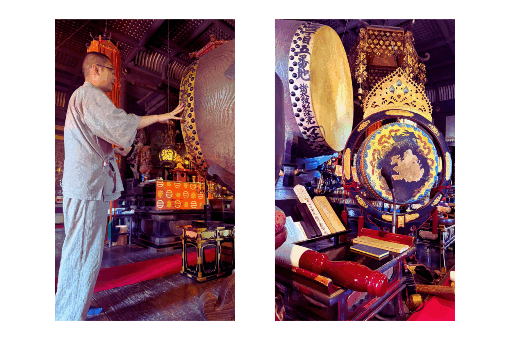 小林副住職が叩いて下さった動画があるので、ぜひ見てみてください。日本最古の太鼓だと思うと、何か違って聞こえませんか?