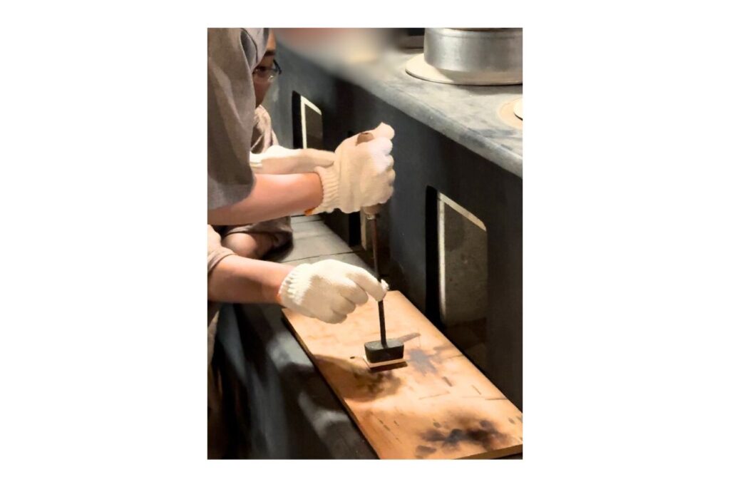そして、焼き印が温まったところで、再びの、じゅーっ。今度はきちんと、心も含めて焼き付きました。