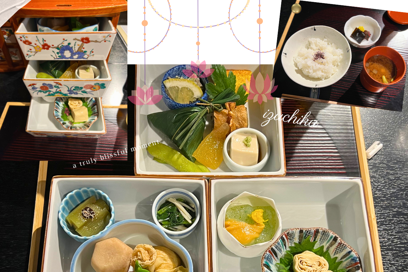 静々と運ばれてきたお膳は、とにかく魅力的!3段の玉手箱に入ったかわいい見た目で、開いていくと美しく盛り付けられた精進料理たちが次々と出てきます。伺ったのが初夏だったのですが、旬のお野菜がたっぷり使われていて、目にも口にも美味しい♡お出汁がしっかりしているので、動物性のものを使っていなくても十分満足できます。何よりも、美しい庭園を見ながら、禅の空間でいただくお食事は、体だけでなく心にも栄養を与えてくれた気がしました。