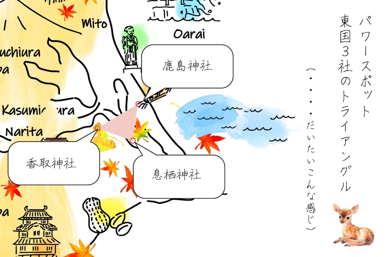 さらに特徴的なのは、三社の位置がほぼ二等辺三角形を形成していることです。三社がつくる「トライアングルゾーン」は、関東の特別なエネルギーが集まる聖地として篤い信仰を集めています。