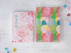和のモチーフをキュートにアレンジした、布製の友禅調御朱印帳です。