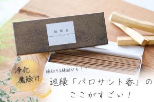 そこで巡縁がお届けするのは、天然素材100%の「パロサント香」。火をつけると柔らかな香りがゆっくりと広がり、リラックス空間を演出します。シックで上品なパッケージは贈り物にも最適です。空気の浄化はもちろん、リフレッシュしたい時や集中したい時、ヨガや瞑想の時間など、さまざまなシーンでお使いいただけます。