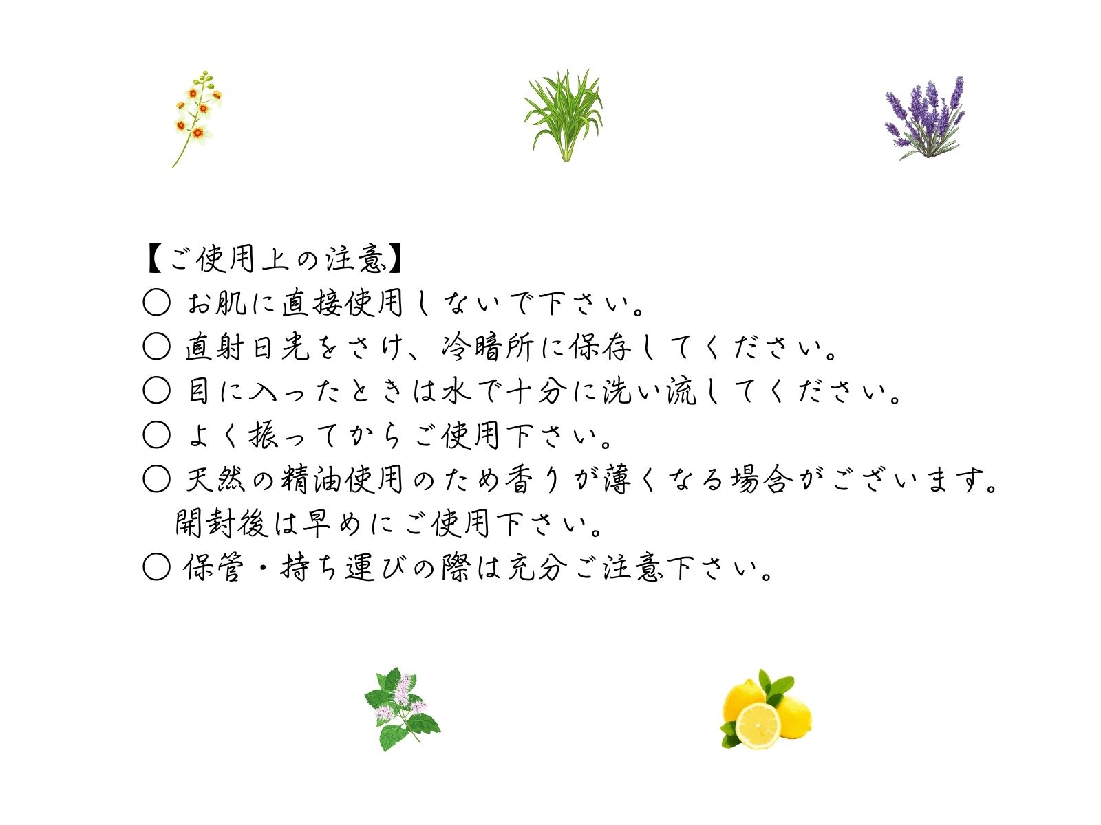 ※ お好みに応じて「精製水」で香りを調節することをおすすめしています。