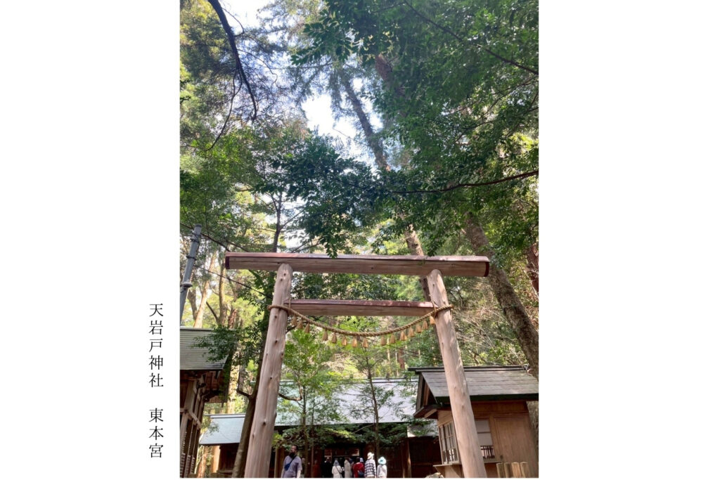 「天岩戸神社 東本宮」は、天照皇大神が天岩戸からお出ましになられた後、最初にお住まいになられた場所を御祀りしている神社です。
