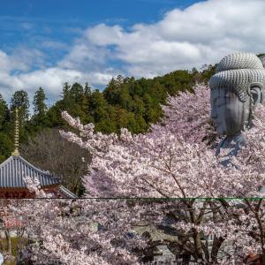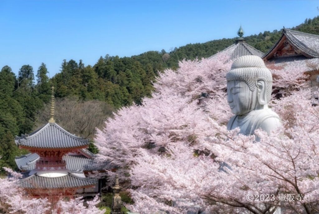 桜に囲まれた大仏さまがフォトジェニックな天平のいらかの古刹です。